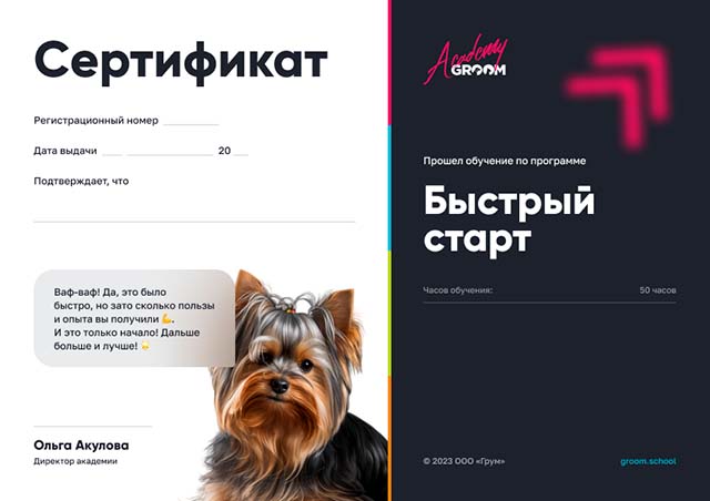 Академия была необходима, для обучения грумеров для салона Groom. Дарья Гоц подошла основательно к популяризации груминга через развитие культуры содержания домашних животных.